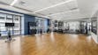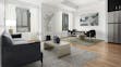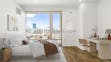 Modern unit features open-plan layout, stainless-steel appliances, floor to ceiling glass and GE Café series appliances.